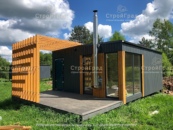 Баня с теплым контуром, черновым полом из OSB, полностью отделанным фасадом, остеклением, входной дверью и кровлей. Чистовую обшивку стен деревом, разводку инженерных сетей, установку светильников, розеток, выключателей.